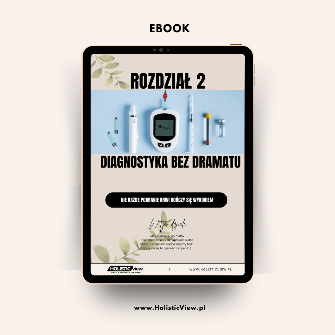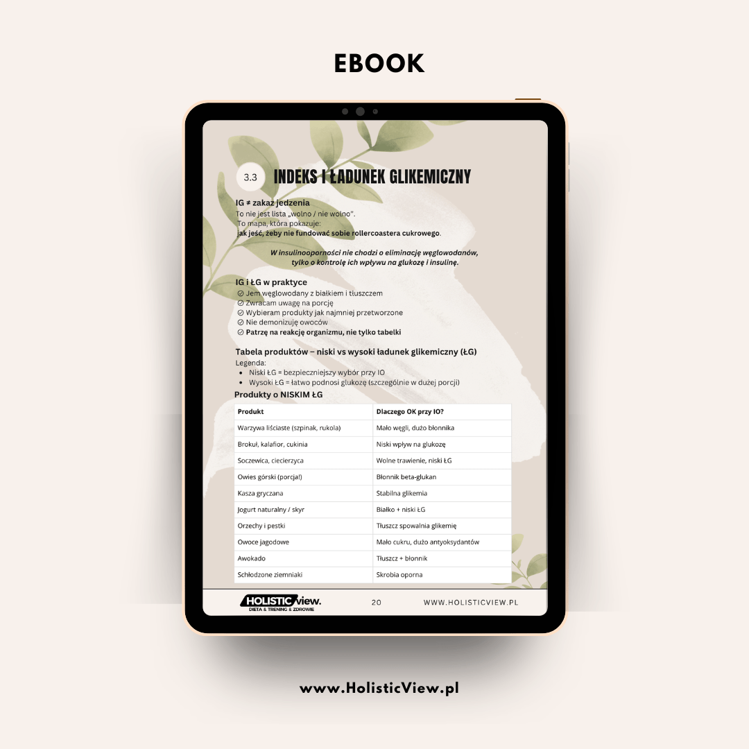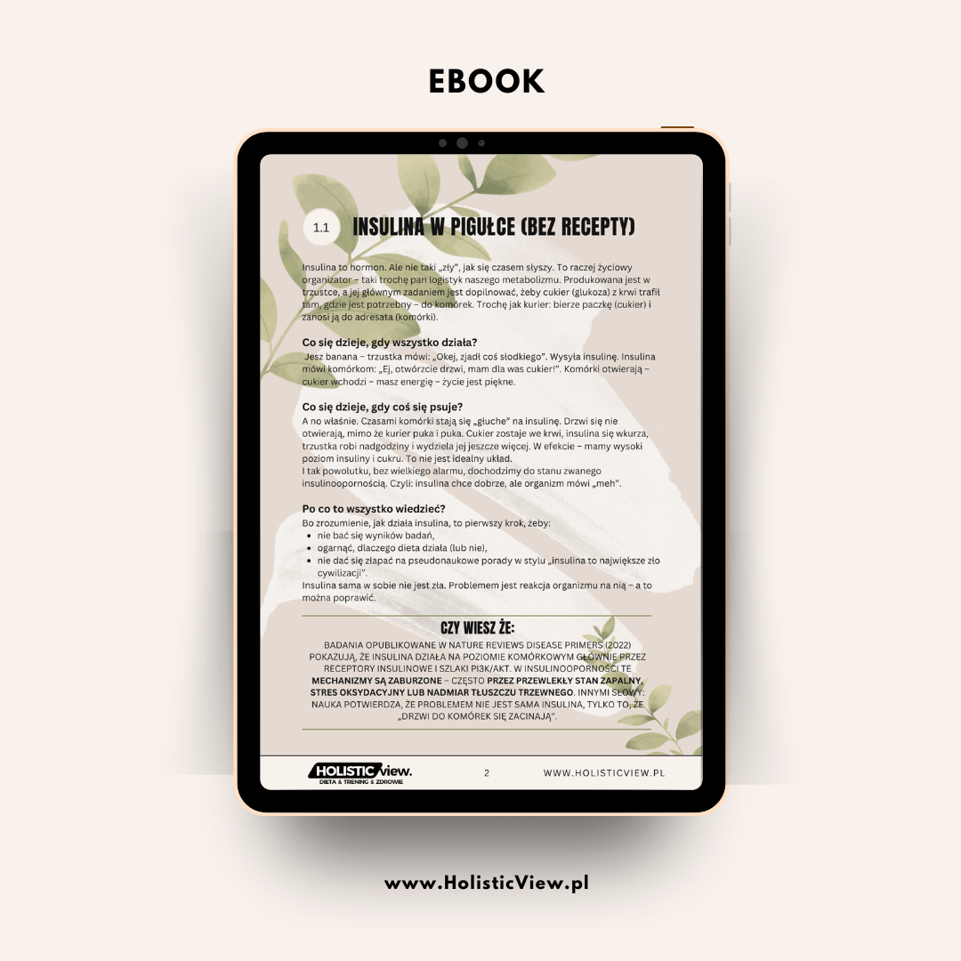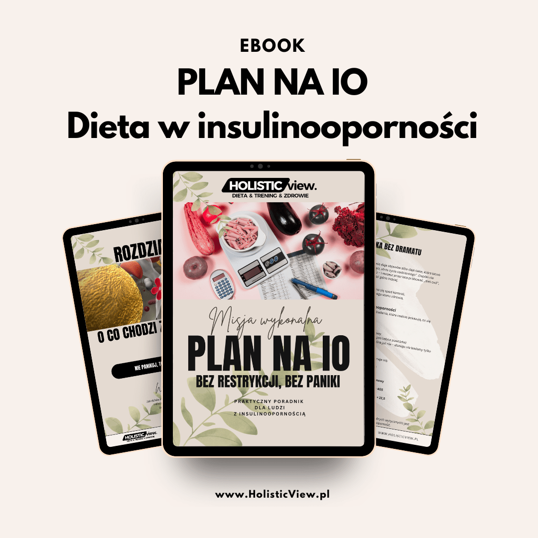 EBOOK „PLAN NA IO – bez restrykcji, bez paniki” to lekki, praktyczny i pełen humoru poradnik dla osób z insulinoopornością: