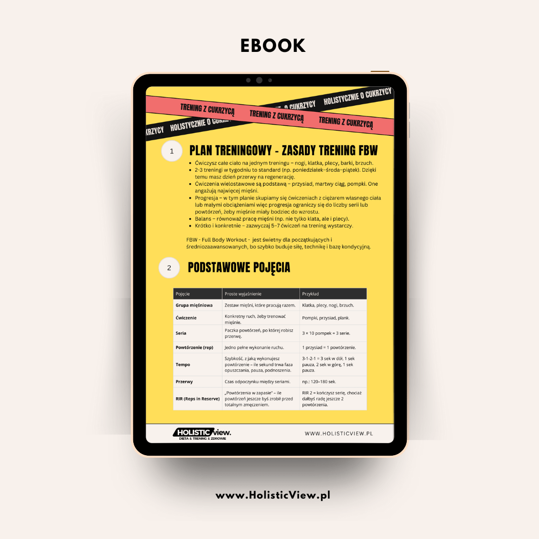 Ten plan treningowy to gotowe rozwiązanie dla osób, które chcą bezpiecznie i skutecznie trenować siłowo, poprawić wrażliwość insulinową i wzmocnić ciało – bez chaosu, bez zgadywania i bez „fit-magicznych sztuczek”.